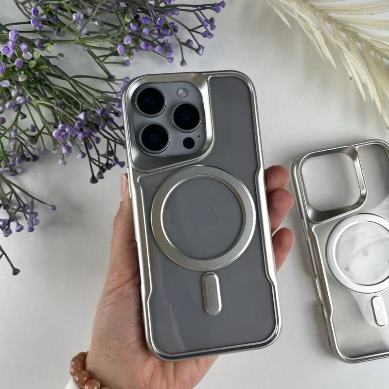Чехол с magsafe для айфон 16 про. case for iphone 16 pro esthetic серебряный