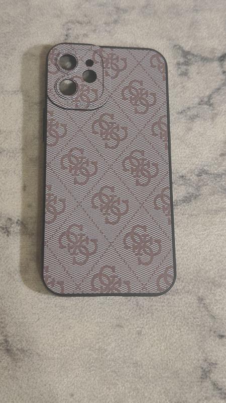 Чехол на 12 iphone с узором, включающим логотип бренда Guess.
