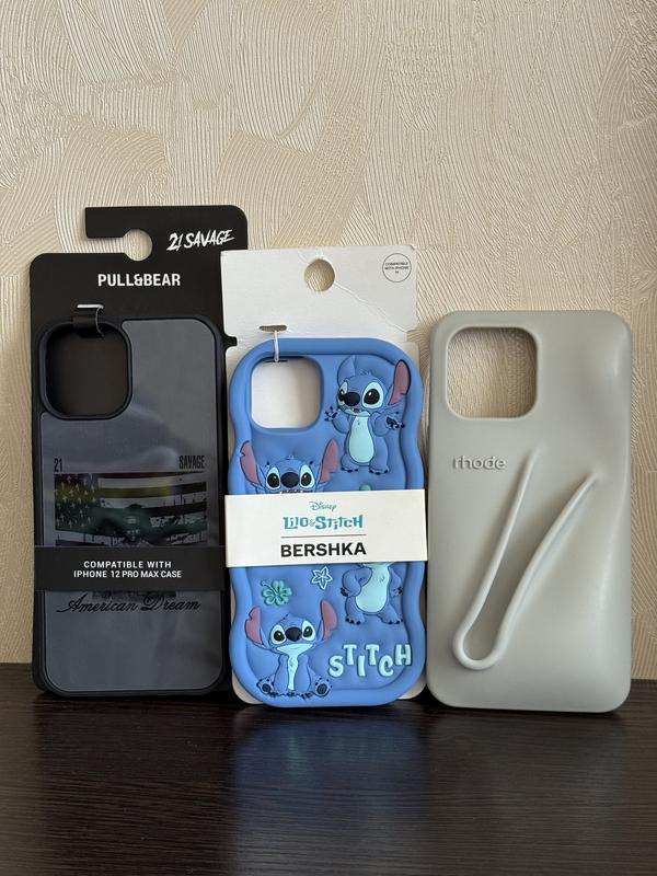 1) чехол Pull&Bear на iPhone 12 Pro Max! Новый абсолютно, в защитное пленке. Пластик. 21 Savage - American Dream Отдаю за 238 грн! 2) чехол Bershka на iPhone 14! Новый, в защитной упаковке, покупала за 649 грн, отдаю за 348 грн! Силиконовый, Disney Stitch! 3) чехол Rhode на iPhone 14 Pro! Был немного в использовании, оригинал! Отдаю за 648 грн!
