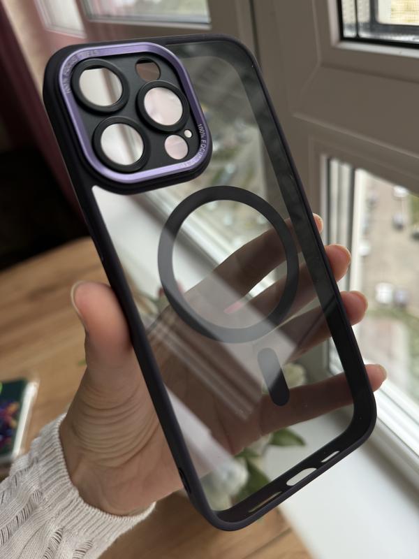 Чохол ПРОТИУДАРНИЙ напівпрозорий з MagSafe з захистом камери - чорний з фіолетовим .