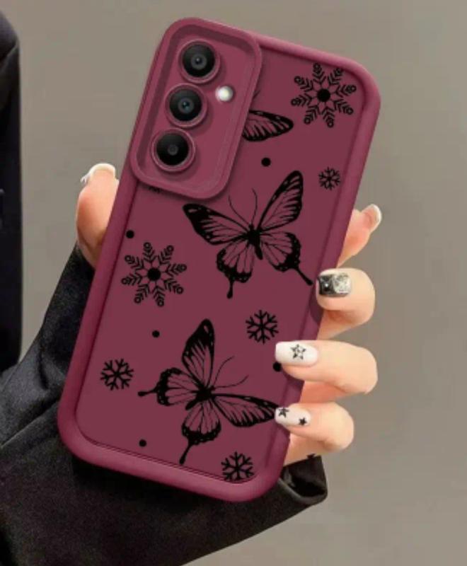 Стильный, качественный, силиконовый чехол на самсунг Galaxy А36-5 G. Цвет: бордовый с черными бабочками.