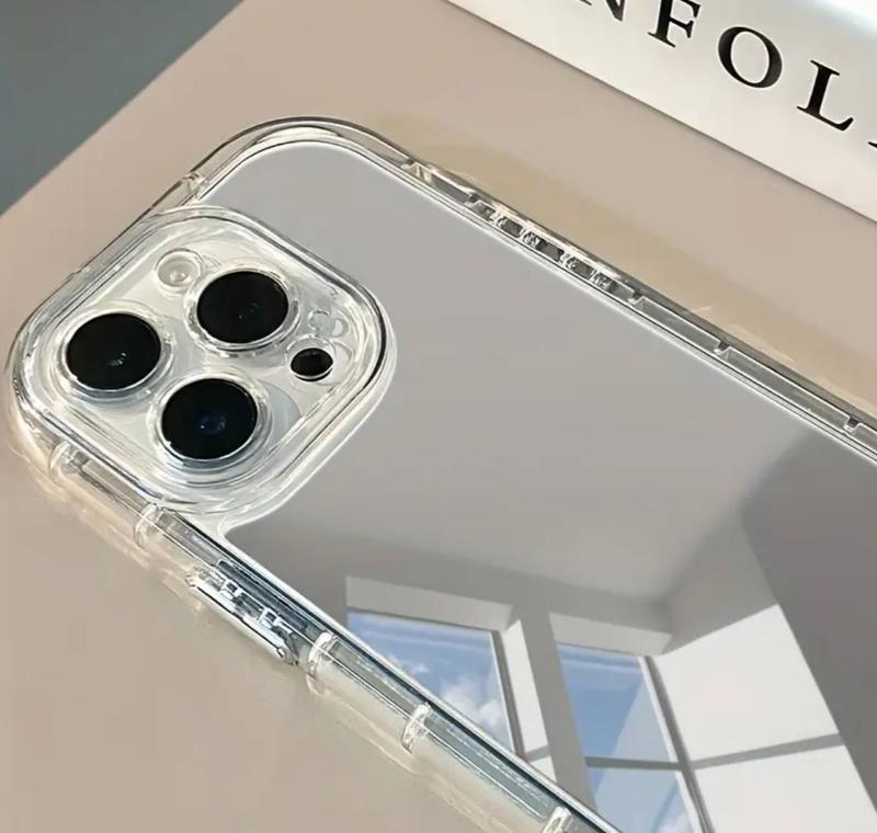 прозорий чохол із дзеркальною задньою панеллю. Підходить для моделей iPhone 14 Pro або iPhone 15 Pro брала для себе, але помилилась з моделлю і мені завеликий😔 дзеркальна поверхня — можна піддивитись макіяж або зачіску міцні прозорі бортики захищає кути та камери виглядає дуже естетично