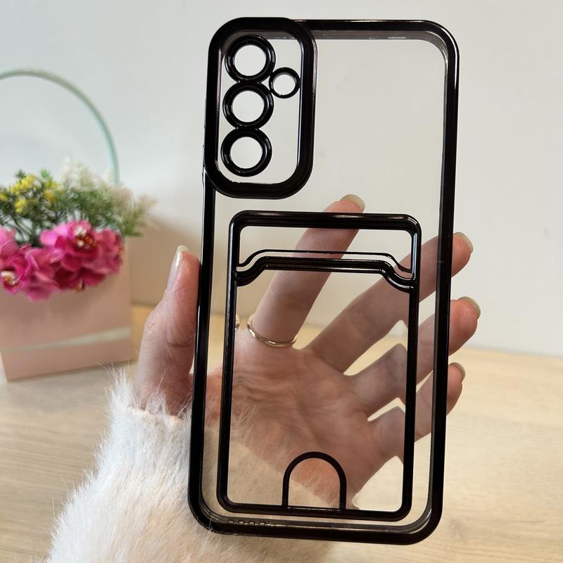 Чохол на samsung a25 5g силіконовий із сірою рамкою та кишенею під картки