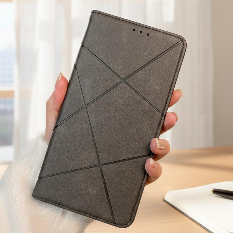 Чехол для poco c75 книжка подставка с магнитом и визитницей business leather серый