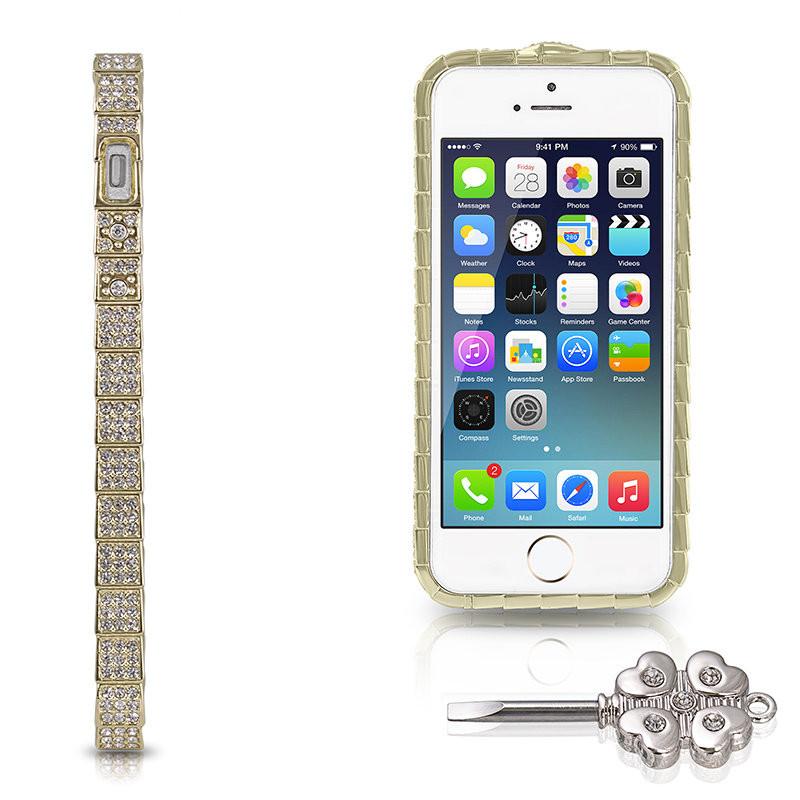 Новая модель бампера, отличается ярким сверкающим дизайном он изготовлен из лёгкого металлического сплава и инкрустирован кристаллами. Все кристаллы на бампере закреплены очень надежно, расположены в три ряда в каждой ячейке, по всему периметру бампера, за исключением мест под разъемы. Бампер Metal Secret with Diamonds iPhone 5 Gold придётся по душе любителям максимальной открытости телефона с хорошей степенью защиты, а также любителям ярких и красивых аксессуаров. Бампер идеально подходит по форме, надежно фиксируется на телефоне с помощью замочка и у Вас не возникнет трудностей его открывать, так как ключик-бабочка идет в комплекте . Уникальная конструкция позволяет получить легкий доступ ко всем функциям телефона, внутренняя часть бампера изготовлена с использованием амортизирующего материала который смягчит повреждения и не позволят поцарапать стенки iPhone изнутри при ударах и падениях. Эта модель сделана без использования шурупов, в отличие от остальных металлических чехлов. Этот замечательный аксессуар станет отличным подарком для девушки! Цвет: Золотистый Тип: Бампер Материал: Металлический сплав, стразы Совместимость с моделями APPLE: iPhone 5/5S