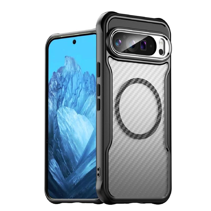Чехол бампер для google pixel 9 pro противоударный magsafe airbag carbon fiber black