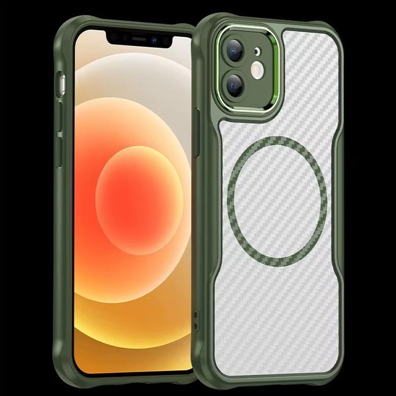 Чехол бампер для iphone 11 противоударный magsafe airbag carbon fiber хаки