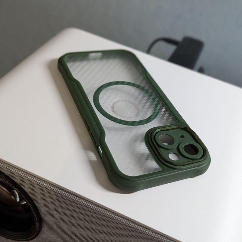 Чехол бампер для iphone 14 | 13 противоударный magsafe airbag carbon fiber хаки