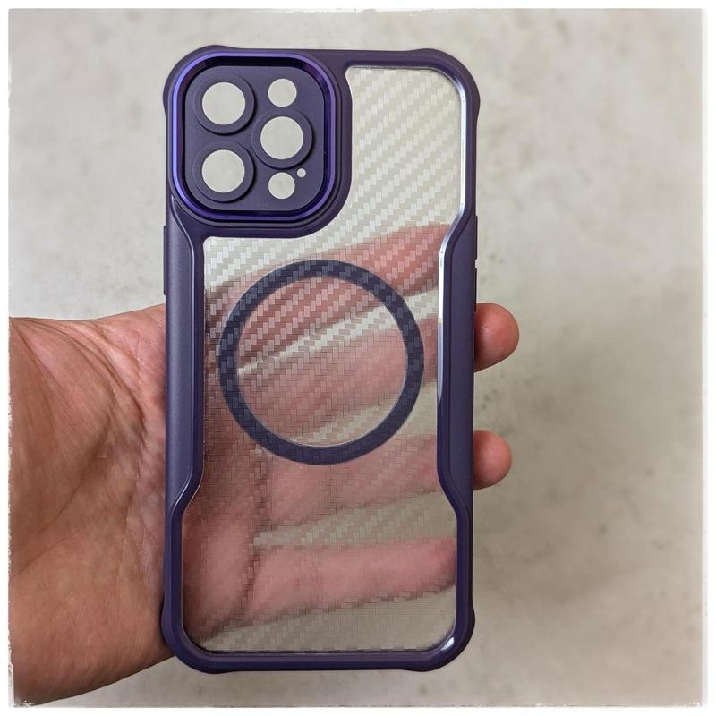 Чехол бампер для iphone 12 pro max противоударный magsafe airbag carbon fiber purple
