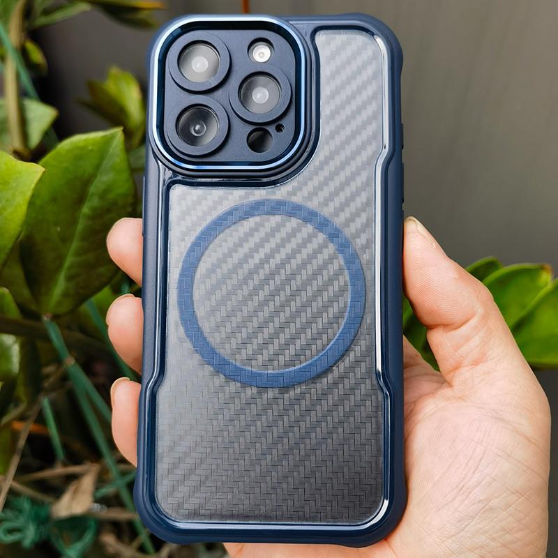 Чехол бампер для iphone 14 pro противоударный magsafe airbag carbon fiber dark blue