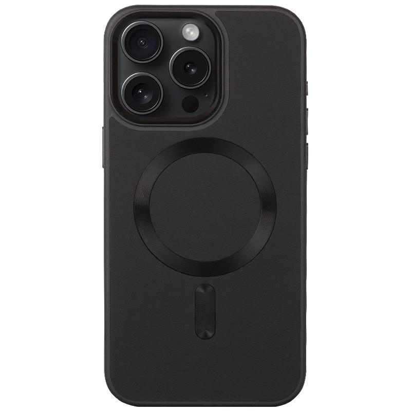 Шкіряний чохол bonbon leather metal style with magsafe для apple iphone 14 pro (6.1") блак...