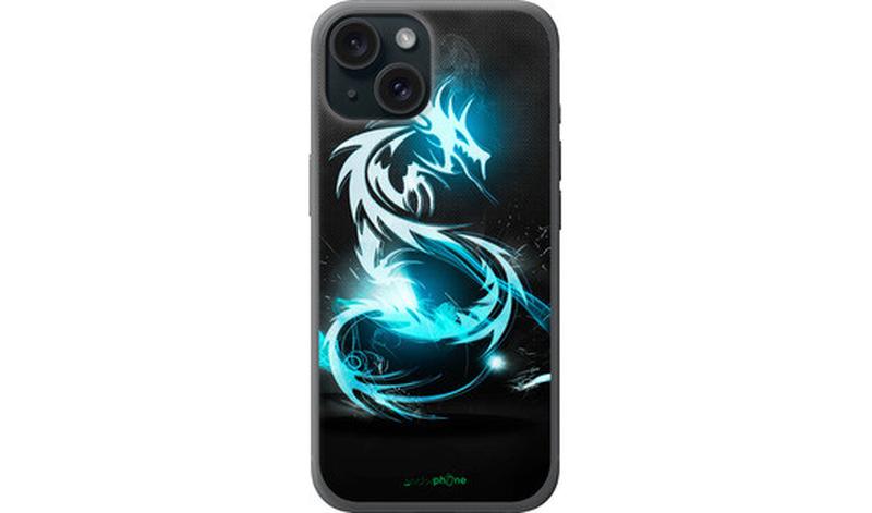 Чохол на iphone 15 біло-блакитний вогненний дракон "113u-3075-7673"