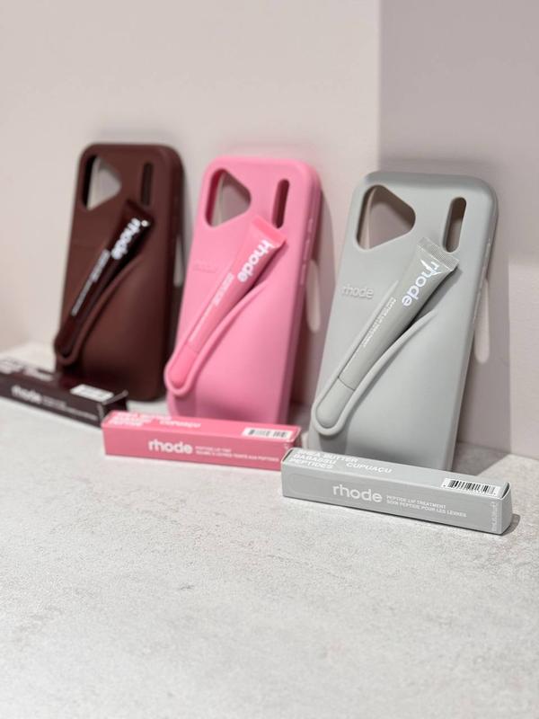 Трендовый аксессуар в фирменном стиле бренда! В наличии цвета: розовый, серый, коричневый - каждый выглядит максимально эстетично и лаконично. Бонус: в комплекте стильный бальзам для губ RHODE - идеальный сет для сумочки.