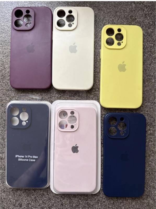 Чохли в ідеальному стані! Чохли на 14 про макс iPhone в ідеальному стані. Синій запакований новий 250грн. Кольори : синій - 2 шт, молочний, жовтий, фіолетовий, ніжно рожевий 200, 1 прозорий зі стразами - 175 грн, коричневий 100 грн.