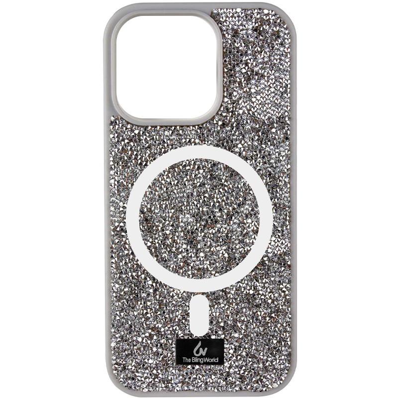 Tpu чехол bling world rock diamond with magsafe для apple iphone 15 (6.1") grey