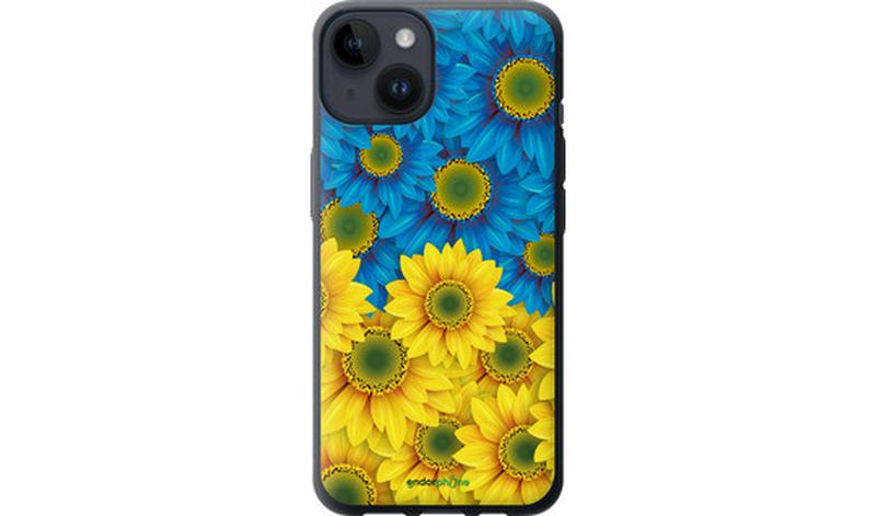 Чехол на iphone 14 жёлто-голубые цветы "1048u-2648-73076"