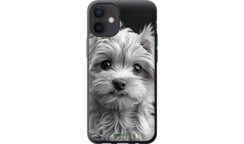 Чехол на iphone 12 mini мальтипу на чорном фоне "6156t-2071-73076"