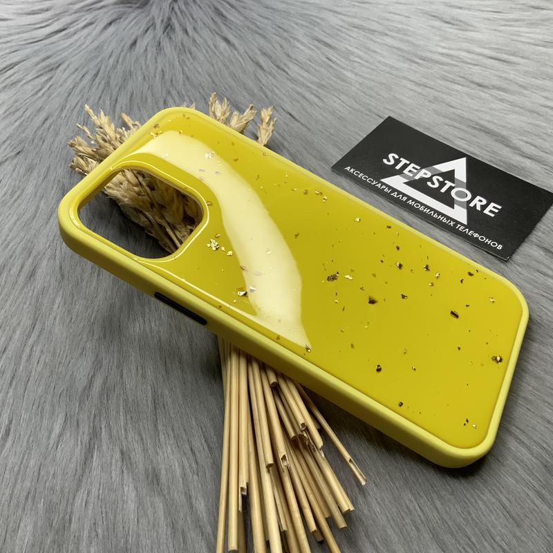 Чехол бампер конфетти для iphone 12 pro max противоударный с блестками желтый