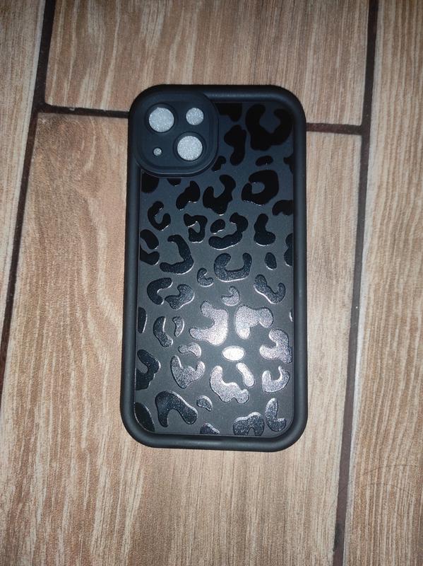 чохол для смартфона: Матеріал:силікон/TPU з матовою задньою панеллю Дизайн: леопардовий принт (чорний + темно-сірий, з легким глянцем на плямах) Рамка: потовщена чорна, захищає кути Блок камери: квадратний з двома камерами — на iPhone 13