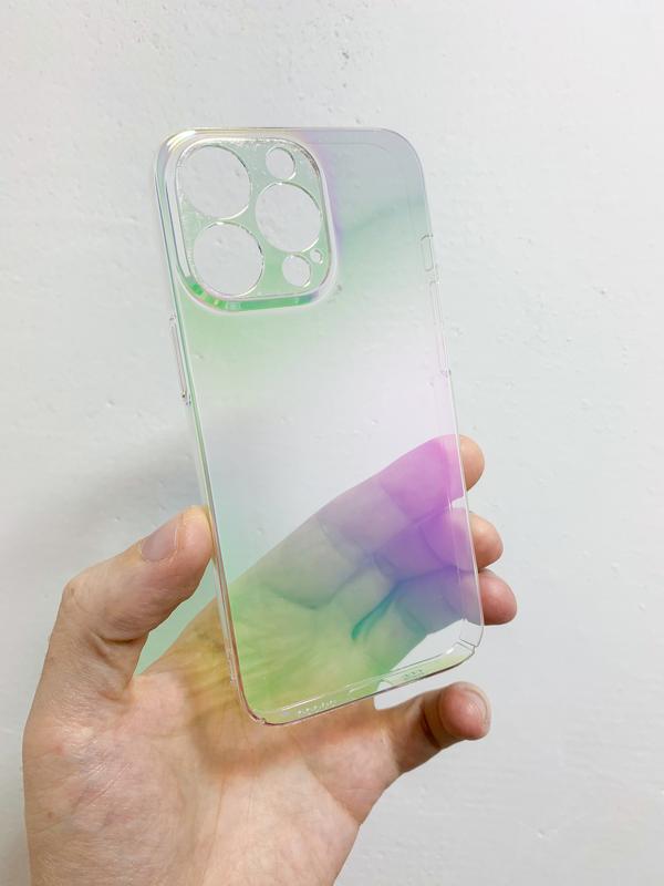 Чохол з прозорого пластику з райдужним відливом для iPhone 13 pro. Чохол захищає камеру та нижню частину смартфона. Чохли нові в коробці. Ціна така бо розпродаємо.
