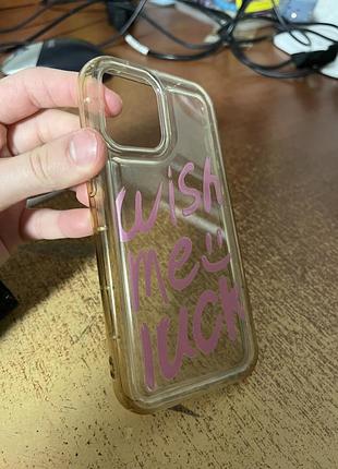 Чохол на айфон 12 Прозорий чохол з рожевим надписом «wish me luck». Подряпин немає. Стан хороший. Є один єдиний дефект те, що він пожовтів, а так стан ідеальний.