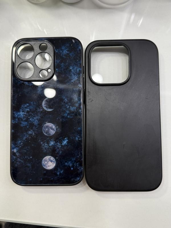Чехол для iPhone 15 pro 1) сильний пластик дизайн місяць. Новий невживаний - 150грн. 2) чорний силікон + внутрішня сторона з мікрофіброю - 300грн.