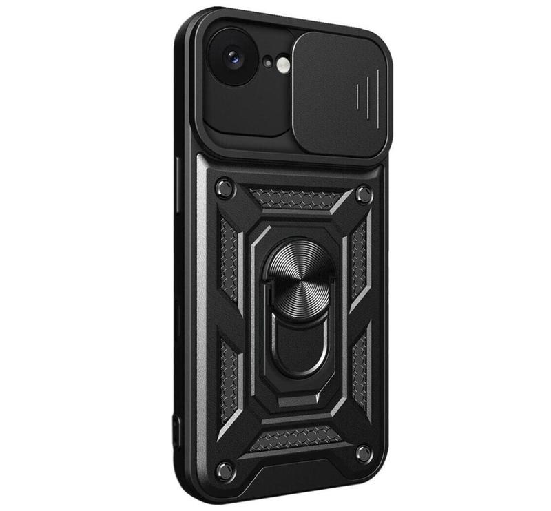 Чехол Primo Shockproof для Apple iPhone 16e - противоударный, с подставкой и шторкой камеры Shockproof-чохол для iPhone 16e -- это надежный аксессуар, созданный для тех, кто хочет подарить своему смартфону максимальный уровень защиты как в повседневном использовании, так и во время активного отдыха. Прочная комбинированная конструкция из амортизирующего TPU и твердого поликарбоната эффективно поглощает удары и значительно уменьшает риск повреждений при падениях. Защита камеры со сдвигающейся шторкой Одной из ключевых особенностей чехла является подвижная шторка, которая полностью прикрывает блок камер. Она предотвращает появление царапин, предохраняет линзы от пыли и обеспечивает их безопасную транспортировку. Кольцо-держатель для удобства Встроенное металлическое кольцо делает использование iPhone 16e еще практичнее: - позволяет комфортно держать смартфон одной рукой; - работает как подставка для просмотра контента; - благодаря металлической пластине внутри -- легко фиксируется на любом магнитном автодержателе. Комфорт и функциональность Рельефная антискользящая поверхность обеспечивает уверенный хват, а усиленные кнопки и точные вырезы позволяют пользоваться всеми возможностями iPhone 16e без каких-либо ограничений. * * * Основные преимущества: - Надежная шторка для полной защиты камер - Функциональное кольцо-держатель / подставка - Поддержка магнитных автодержателей - Противоударная двухслойная конструкция (TPU + PC) - Стильный рельефный дизайн с антискользящим эффектом - Идеальная точность вырезов и защита кнопок