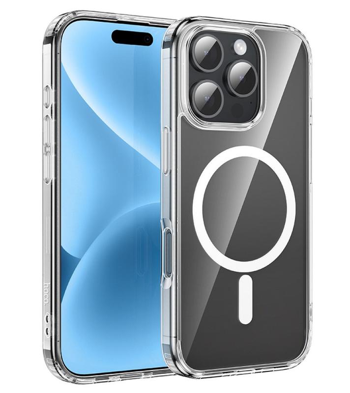 Чехол для iPhone 16 Pro Hoco Magnetic Series Airbag Anti-Fall Protective Shell (прозрачный) Прозрачный чехол с магнитом Hoco Magnetic Series для iPhone 16 Pro -- надежная защита вашего смартфона с акцентом на стиль и функциональность. Аксессуар изготовленный из прочного поликарбоната и TPU материала, оснащен усиленными углами с подушками Airbag для эффективного поглощения ударов при падениях и защитой от царапин. Упакован в фирменную коробку производителя Хоко, в которой прекрасно подойдет на подарок. Благодаря встроенному магнитному кольцу он полностью совместим с магсейф аксессуарами, обеспечивая удобное беспроводное зарядное соединение и надежное удержание держателями. Прозрачный корпус сохраняет оригинальный дизайн iPhone, а антижелтеющее покрытие предотвращает помутнение со временем. Эргономичная форма и точные вырезы под платформу камеры, порты и кнопки гарантируют комфортное использование и совместимость с защитными пленками и стеклами. Особенности и преимущества: ✔️ Поддержка MagSafe -- встроенные магниты для зарядки и подключения аксессуаров. ✔️ Airbag защита по углам -- усиленная защита борта от ударов и падений. ✔️ Прозрачный премиальный PC+TPU -- сохраняет дизайн iPhone 16 Pro. ✔️ Покрытие с устойчивостью к пожелтению -- долго сохраняет прозрачность. ✔️ Материал не скользит в руках -- имеет легкий вес и комфортно лежит в руке. Этот чехол сочетает максимальную защиту, совместимость с MagSafe и минималистичный дизайн -- идеальное решение для пользователей, которые ценят функциональность и стиль. Заказать магнитный чехол Хоко магсейф для айфон 16 Про можно в интернет магазине "Lucky Buyer". Отправка осуществляется по всем регионам Украины различными службами доставки, есть возможность оплаты при получении и осмотре.