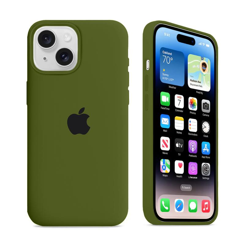 Чехол kassel silicone full case protective для iphone 14 plus с микрофиброй зеленый army g...