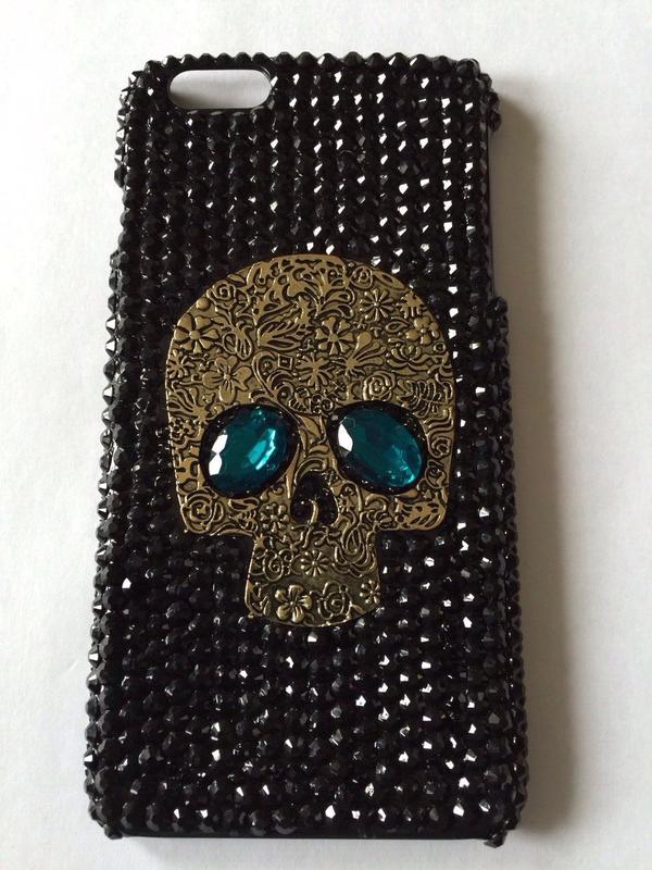 Чехлол на iPhone 6Plus,отличное качество,глаза черепа сделаны из больших темно-берюзовых камней,весь чехол в черных стразах. Сделан из пластика. В комплекте клей и запасные стразы. В упаковке. Возможен торг.