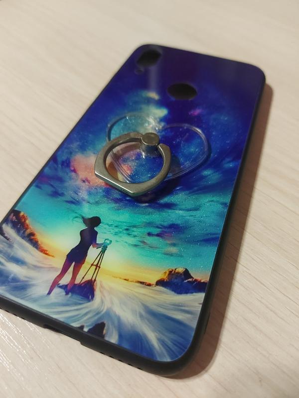 Хороший качественный чехол, материал силикон и стекло, сверху есть попсокет отличного качества, одевался пару раз, в идеальном состоянии !