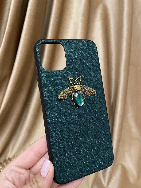 Новый чехол на айфон 11 про макс с текстурой и золотой броши с объёмным камнем изумрудного цвета