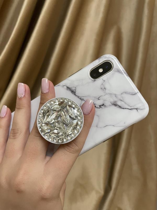 Силиконовый чехол под мрамор с попсокетом с стразами