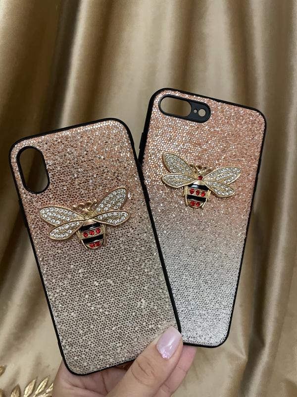 Очень эффектный чехол на айфон с блёстками и градиентом и объёмной броши