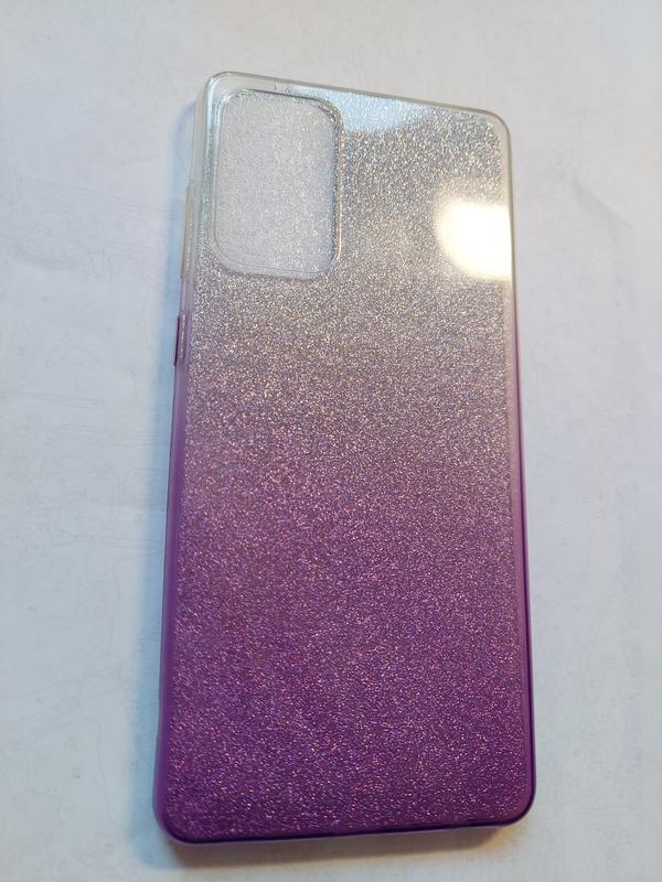 новый чехол, силиконовый с градиентом фиолетового цвета, внутри блестящая подложка которую можно убрать