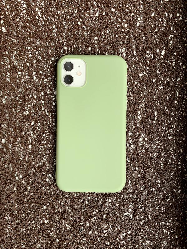 Накладка на iPhone 11 светло-зеленого слегка приглушенного цвета.