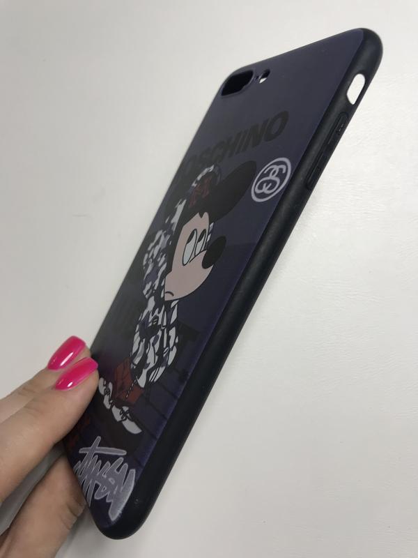 В стилі Moschino. Новий чохол з зображенням одягненої миші. Чорний силікон в середині і по боках чохла
