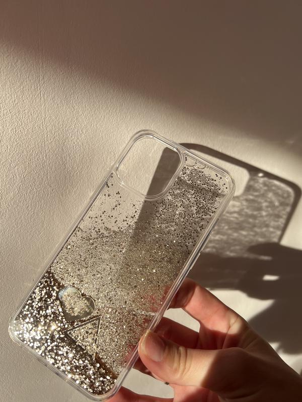 Неймовірний чехол на айфон 12pro max. Дуже класно переливається на сонці, всередині ефект водички з блискітками та лого GUESS.