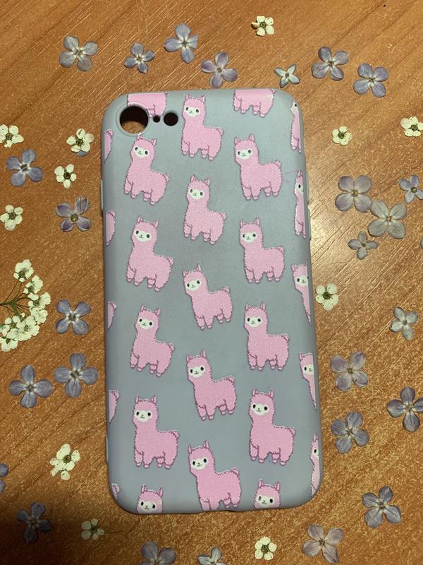 б/у чохол на 7/8 айфон, блакитний з рожевими альпаками з закритим низом