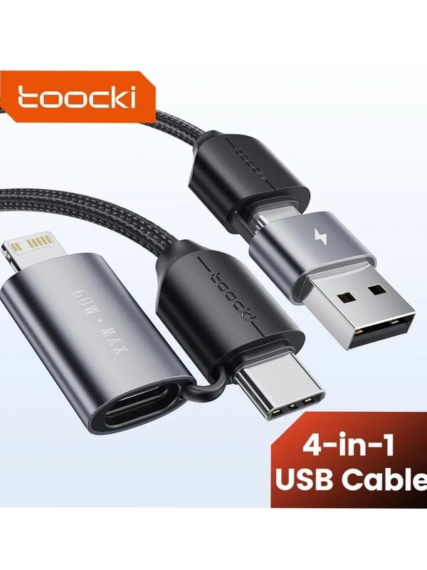 Оригинальный кабель фирмы Toocki 4 в 1 быстро поможет зарядить ваши устройства. Имеет высокую выходную мощность в 60w для Type C порта и 30W для Lightning. Состояние - новый Бренд - Toocki Название - Кабель для передачи данных 4-in-1 Fast Charging Data Cable Материал - Алюминиевый сплав + плетение ткани Длина - 1 м Вес ~ 33 г Цвет - Черный/серый/синий Мощность - PD 60 Вт (20 В/3 А) Скорость передачи — 480 Мбит/с Лучший выбор для путешествий.