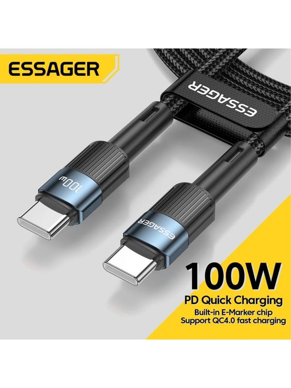 Кабель essager type c to type c 100w 1m qc3.0, шнур есайгер тип с к типу с 100 ватт, кабел...