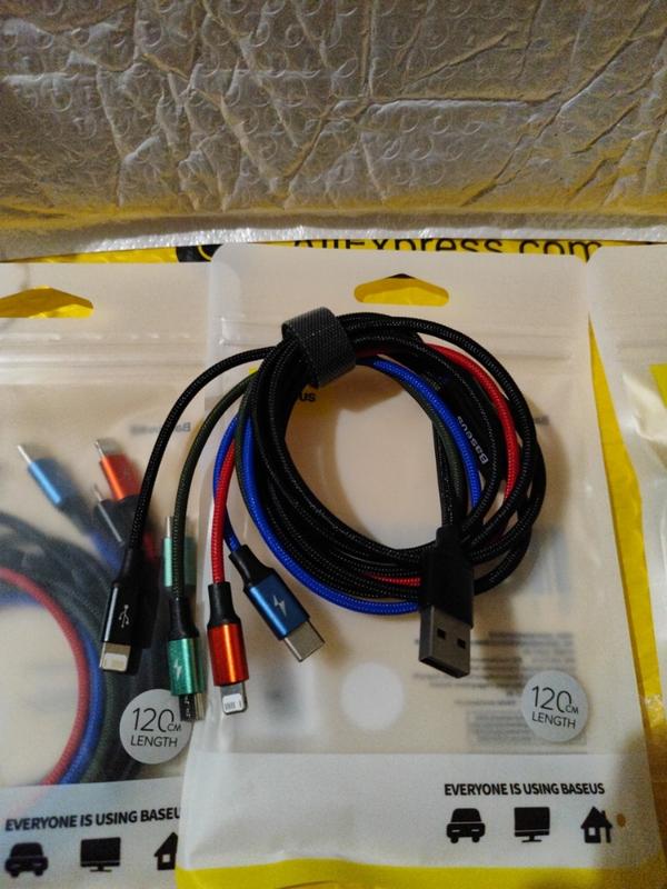 кабель Baseus. 4in1. Технические характеристики: • Производитель: Baseus Вход USB; Выход TypeC, Micro 3,5А, и два выхода lightning. • Длина: 1.2 метра (120 см).