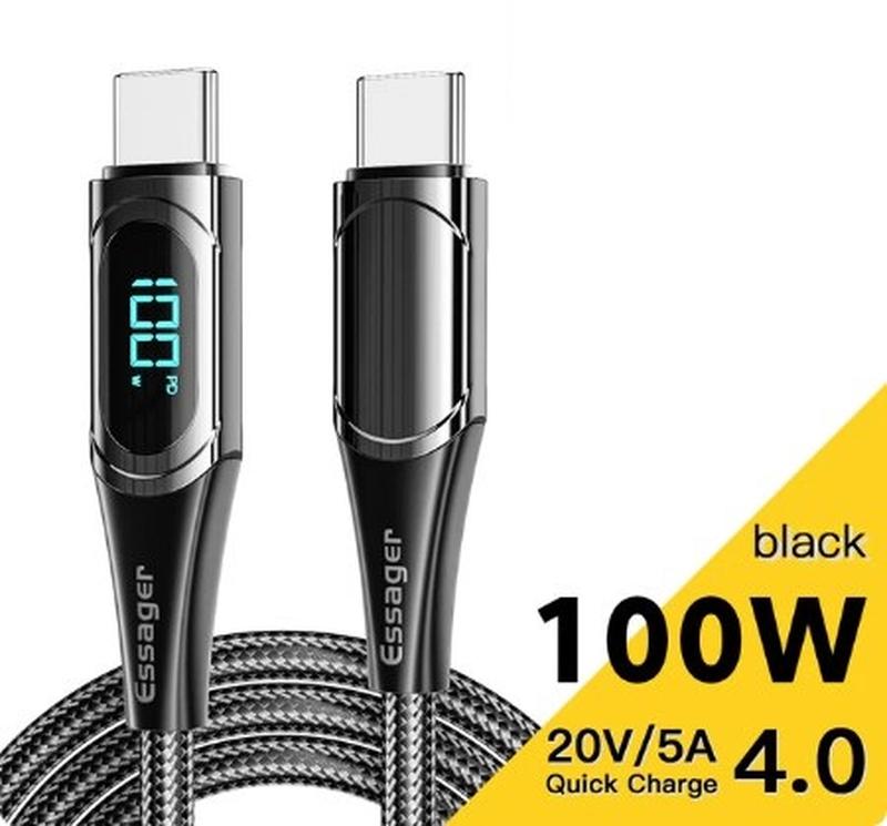 Кабель с дисплеем usb to type-c 5a 1м, черный