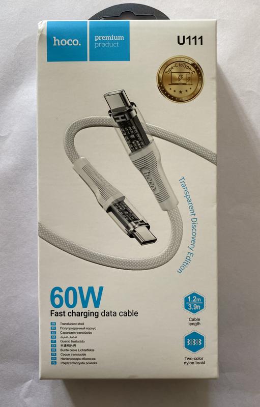 Кабель HOME Type-C на Type-C для зарядки и передачи данных, поддерживает функцию быстрой зарядки. Длина 120 см Мощность 60w, 3А. Цвет Grey