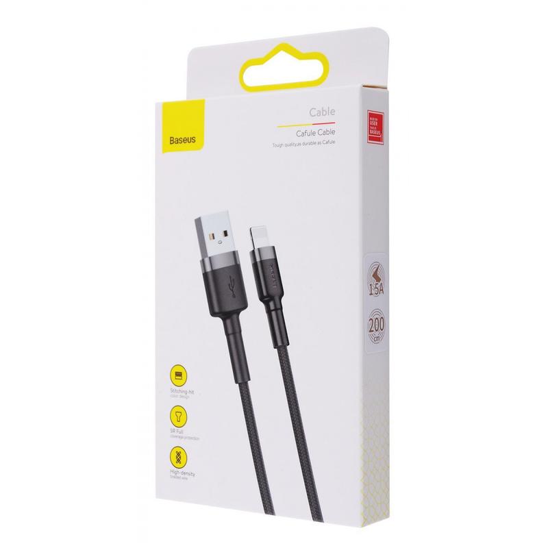 Кабель зарядки для iphone 2 метри baseus cafule lightning 1.5a (2m) (gray/black)