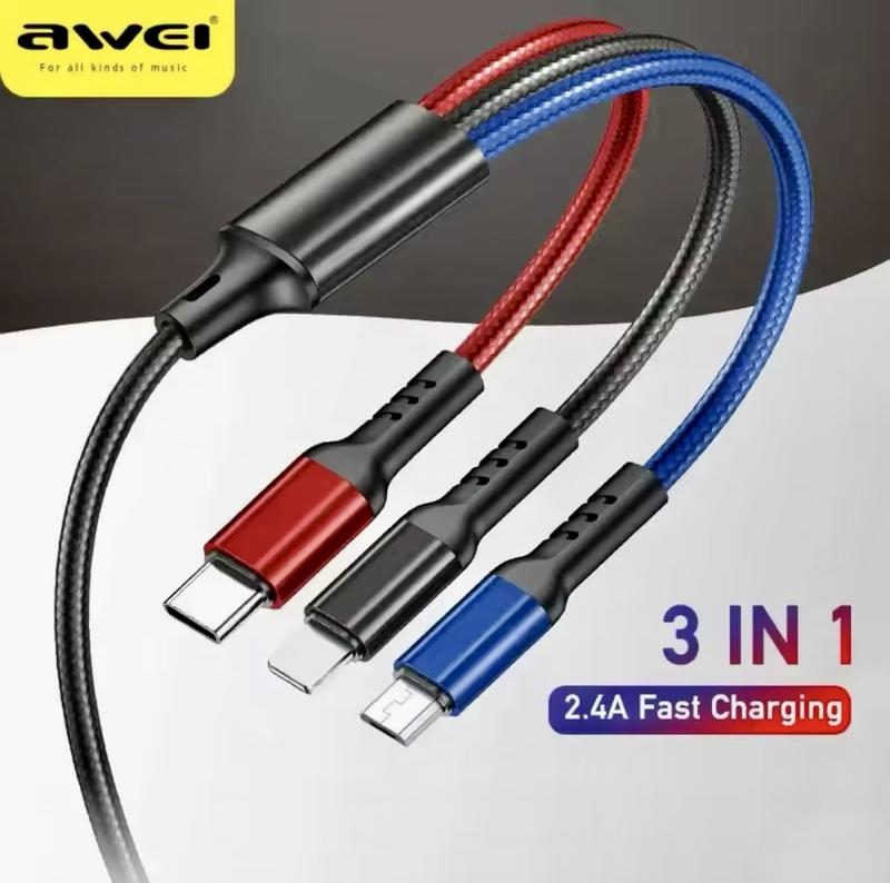 Кабель 3 в 1 usb - type-c - micro usb (1,2 м) awei