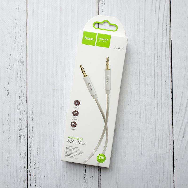 Качественный "трапчаный" Aux кабель Hoco UPA19 с нейлоновой оплеткой: - Интерфейс: mini-Jack 3.5mm to mini-Jack 3.5mm; - Подходит к автомобилям, MP3/MP4 плеерам, колонкам, наушникам, планшетам, телефонам, стерео системам и другим устройствам с портами AUX; - Передача стерео сигнала без потерь; - Прочный, износостойкий и анти-запутывание; - Устойчивость к изгибу; - Сердечник из чистой меди; - Цвет: белый (стальной); - Длинна: 2 метра.