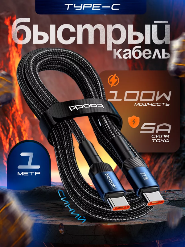 🔋 кабель type-c — type-c 100вт toocki | супербыстрая зарядка | 5a / 20v | 1 метр | оригин...