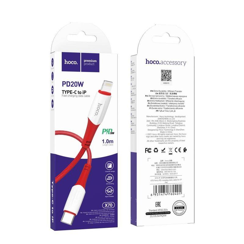 Кабель usb hoco x70 ferry pd20w type c to lightning колір червоний