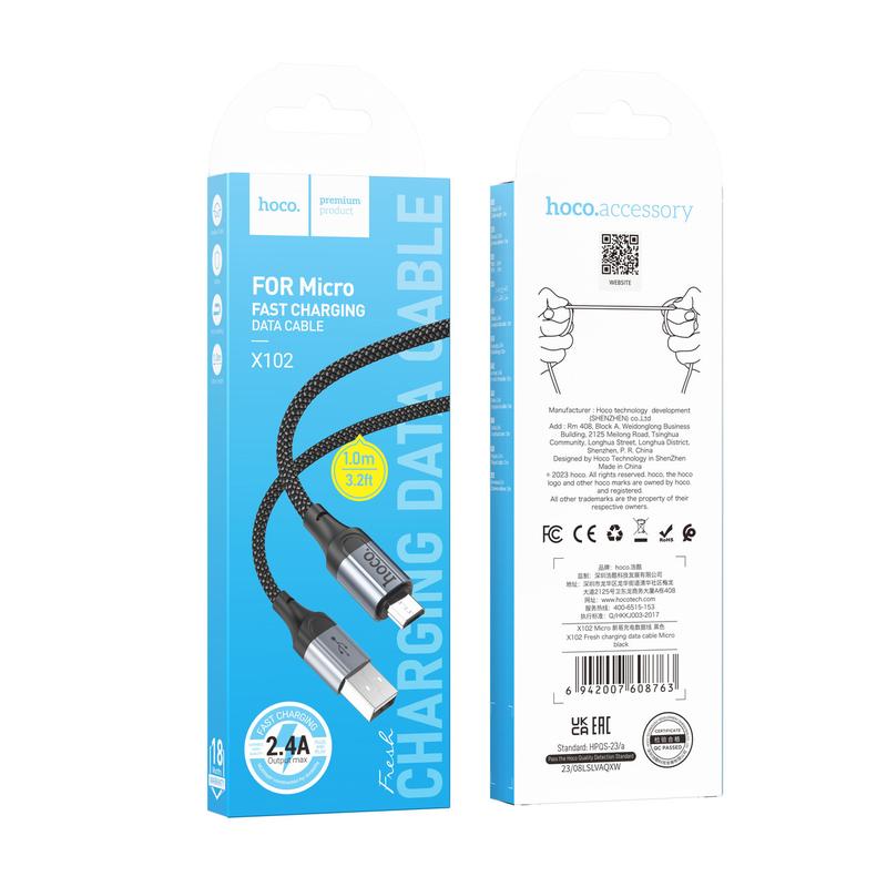 Кабель usb hoco x102 micro 2.4a колір чорний